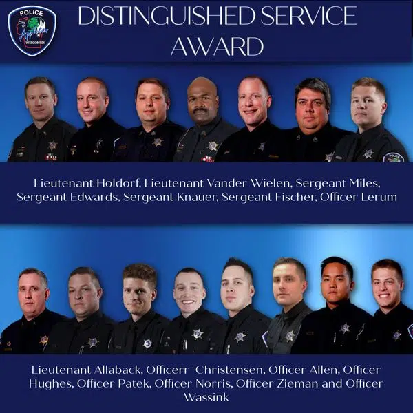 The Appleton Police Department honors all of its officers that responded to the Fox River Mall shooting. Fifteen officers in all receive the Distinguished Service Award. That includes Officer Cody Lerum who was off-duty and in the mall at the time of the shooting last January. He ran to his vehicle–got his service pistol–and engaged the alleged gunman.