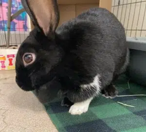 Meet Zevia. She is a 4-year old Dutch mix rabbit with unusual markings. She is very social and super friendly. She loves to be pet. She is spayed and would be a great first time bunny for a family. Just like cats and dogs, rabbits needs exercise and regular interactions with their family members. Zevia would be okay as an only rabbit provided she gets daily interactions from her new family members. Rabbits live 8-10 years provided they are fed a good diet which included, unlimited timothy hay, fresh greens like romaine lettuce, parsley and cilantro. Rabbit pellets are really a small part of a rabbits diet as are occasional treats such as small pieces of carrots, or apple. Did you know giving a rabbit a carrot is like you or I eating a snickers bar. Too much is not a good thing. Zevia is very good at using her litter box too. If you would like to learn more about Zevia, come to OAHS Tues., Thus or Fri. between 1 and 6 pm or Sat. between 11 am– 3 pm and ask to meet her. You won’t be disappointed.